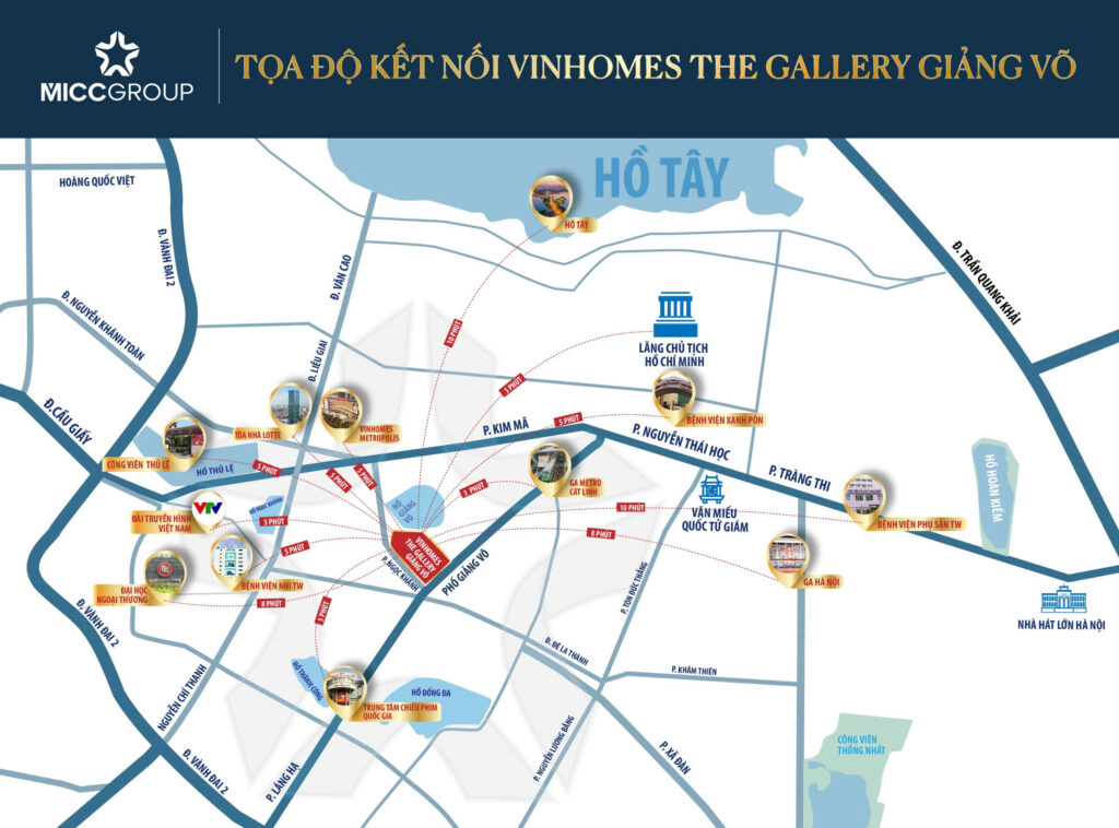 Vinhomes The Gallery 148 Giảng Võ nằm tại điểm giao của 2 trục đường Giảng Võ và Ngọc Khánh, kế cận với các tuyến đường huyết mạch là Kim Mã, Nguyễn Chí Thanh, Đê La Thành (quy hoạch mở rộng), Bus nhanh BRT và dễ dàng di chuyển đến đường Vành đai 2, Vành đai 3 hay tuyến Metro Cát Linh – Hà Đông.