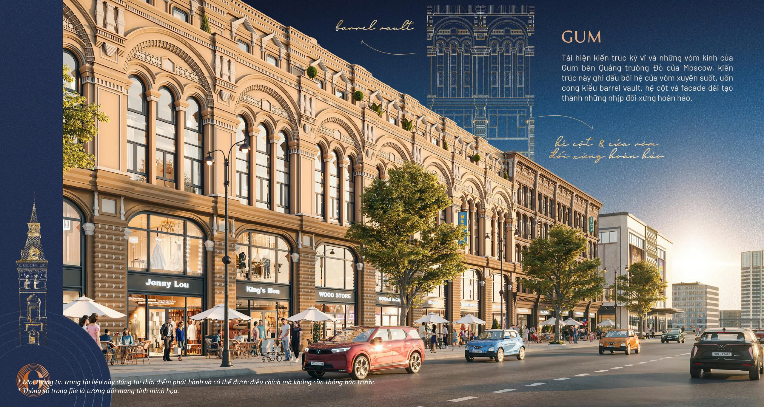 Phân khu Little Gum là phân khu lớn nhất dự án với không gian kiến trúc đậm phong cách của khu Trung tâm thương mại sôi động tại trung tâm thủ đô Moscow – nơi được ví như một nước Nga thu nhỏ.