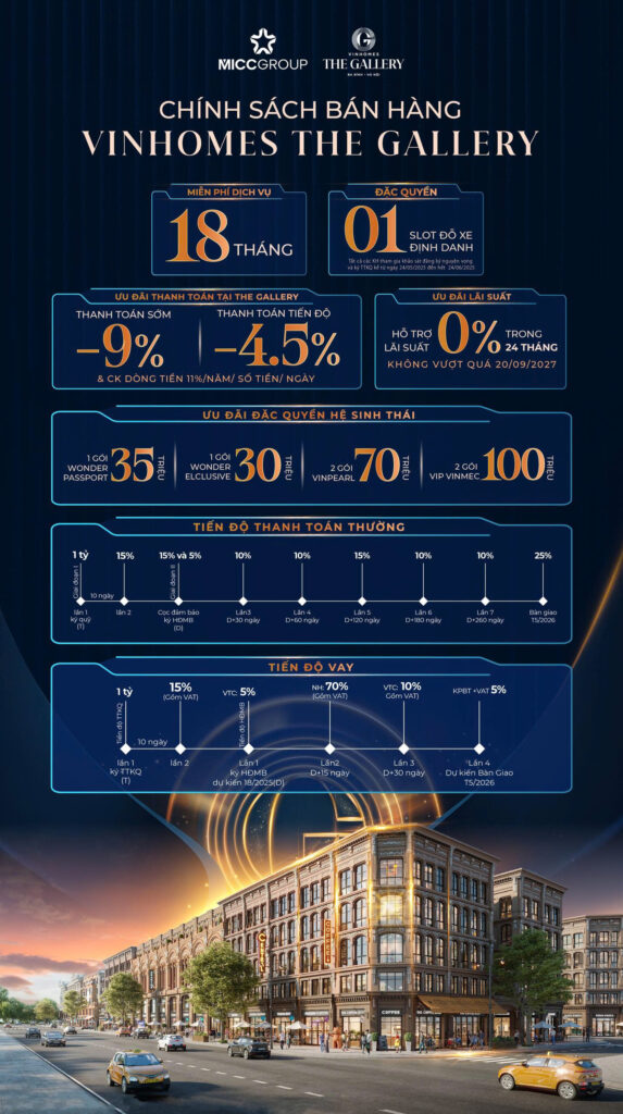 GIÁ BÁN SHOPHOUSE VINHOMES THE GALLERY – GIẢNG VÕ